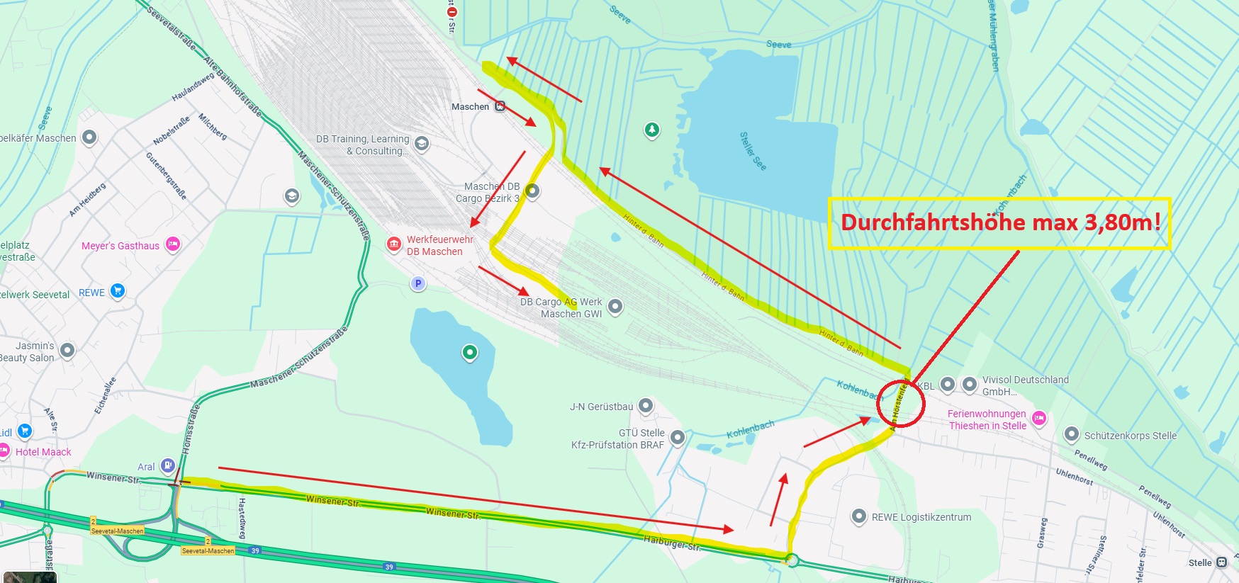 Kleiner Schönheitsfehler: Bis voraussichtlich Ende 2026 ist die Brücke (und somit auch die Zufahrt zum Werk Maschen) nur von der Hörstener Seite aus befahrbar. Der Teilabschnitt aus Maschen (Richtung BAB 39) zur ersten Rampe, bleibt so lange gesperrt.