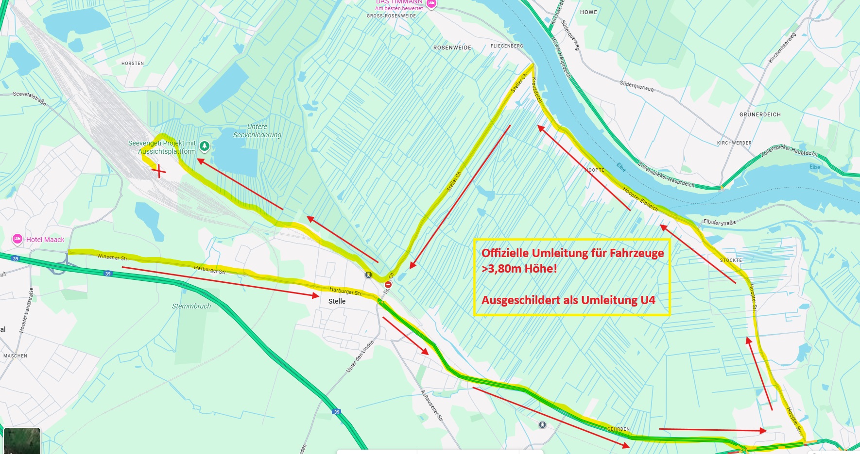 Fahrzeuge über 3,8m Gesamthöhe nutzen bitte die Umleitung 2